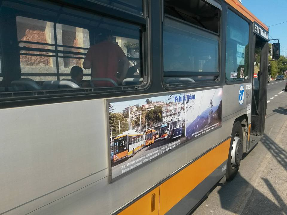 L’associazione FITRAM ha organizzato un evento nella città di Sanremo in l’occasione dei 75 anni della filovia. La giornata si è svolta con una rievocazione sulla rete filoviaria urbana di Sanremo con il filobus Bmb F220LU 4001.12.05 carrozzato Pininfarina matr.1700 di RT. In occasione della manifestazione si è svolta anche la presentazione del sommario del libro STEL – 1942-2017 75 anni di filobus a Sanremo a cura degli autori stessi. Un video-riassunto della giornata è stato realizzato dal canale “Treni e bus by DadoBreda 4317“: |